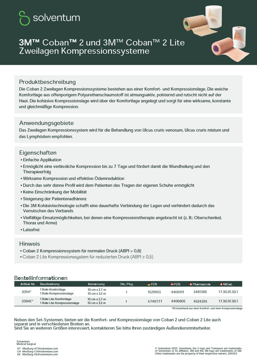 Klinisch bewährte Kompressionstherapie mit dem 3M™ Coban™ 2 Zwei-Lagen-Kompressionssystem