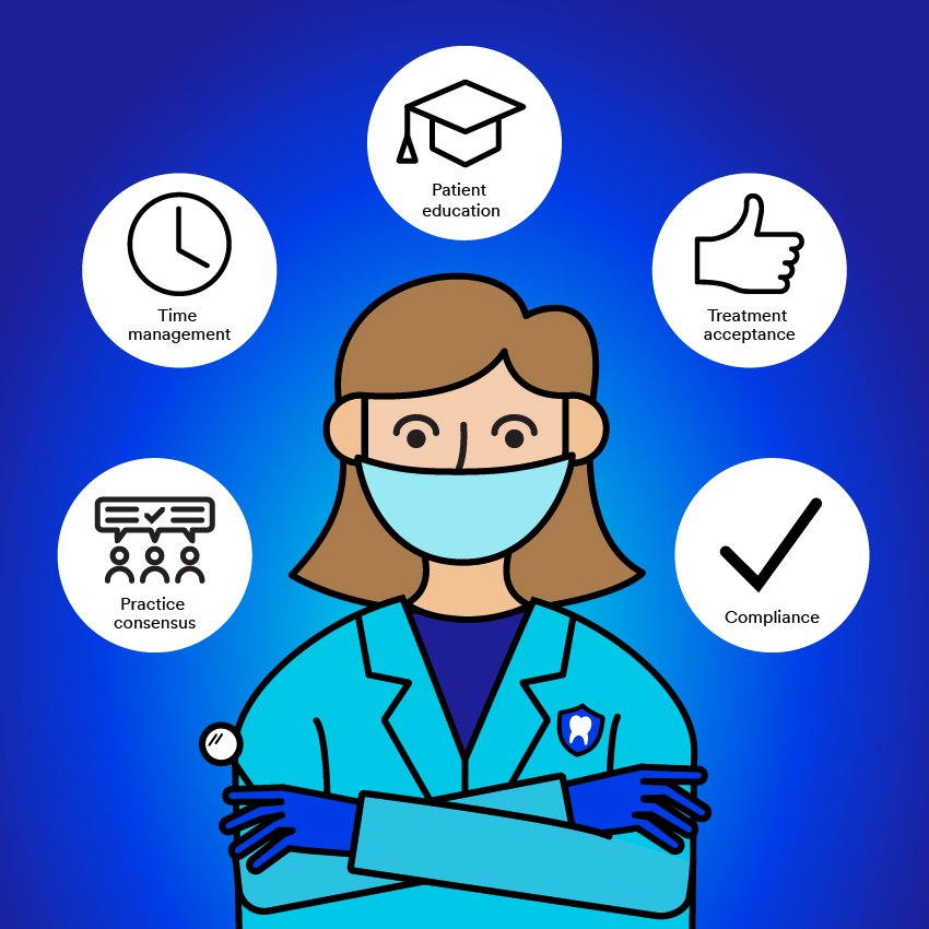 Caries management and prevention can be complicated. There are a variety of challenges that can stand in the way of a productive, consistent strategy – both within your practice and with your patients Practice challenges There are a variety of challenges that come with operating a dental practice, including business administration, inventory management, patient expectations, and the general economic landscape. A few of these challenges will directly affect your caries management strategy:Practice consensus While there are many ways to approach dental care, in order for your practice to do its best work, it’s vital for everyone to be on the same page. Everyone on your team may be working toward the same general goal – creating healthy smiles – but unless everyone agrees on how to go about that, opportunities for success may fall through the cracks. Your practice’s treatment philosophy as well as any new assessment protocol should apply to everyone on your team. Not only does this create a culture of confidence and cooperation, but it ensures patients receive a consistent level of care. It’s important to keep the lines of communication open and regularly check in that your team is in sync. This may look like consistent team meetings to review practices, answer questions, and ensure the latest evidence-based protocols, products, and services are included in the treatment protocol.