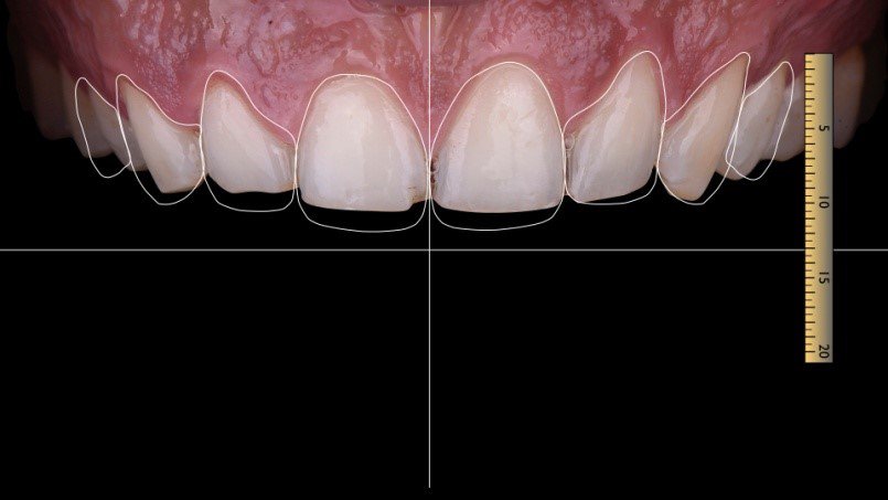 This image displays the treatment plan recommended by the dentist, which involves eight maxillary teeth in the aesthetic region.