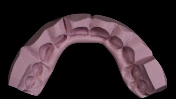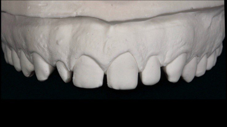 Model with the wax-up developed by the dental technician with the virtual analysis in mind.
